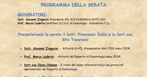 ✨ Unisciti a noi per una serata speciale!✨ Martedì 24 giugno alle ore 19, ti aspettiamo in Piazza De André 76 ad Alessandria, presso l’Associazione Cultura e Sviluppo, per sostenere la lotta contro le malattie del sangue con AIL Alessandria-Asti ODV. 💙 Un evento di solidarietà, musica e tanta positività! Non mancare! 🙌 #AIL #ailalessandriaastiodv #culturaesviluppo